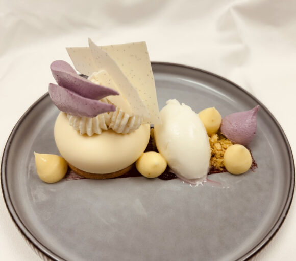 Vanilla Mousse with Blueberry and Lime Olive Oil Cream