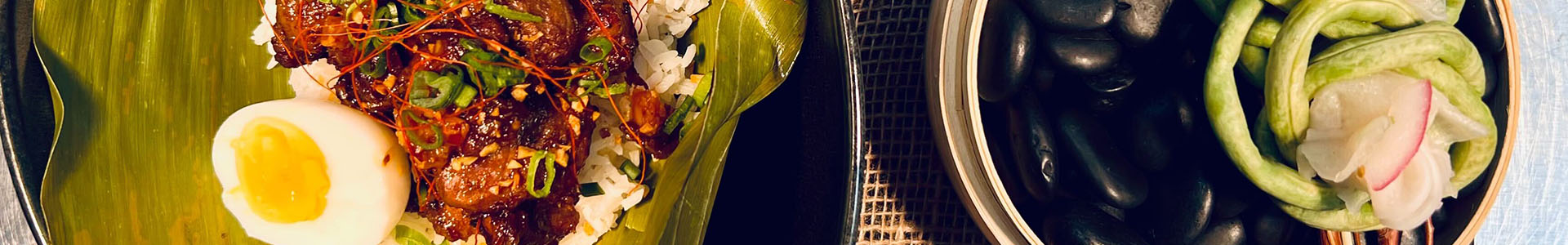 - Serve over a hot bowl of steamed jasmine rice and top with a boiled egg, fried garlic and scallions and a side of daikon salad (procedure below).