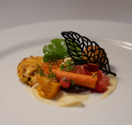 - Serve with the tuna roulade, pomegranate coulis and daikon purée.